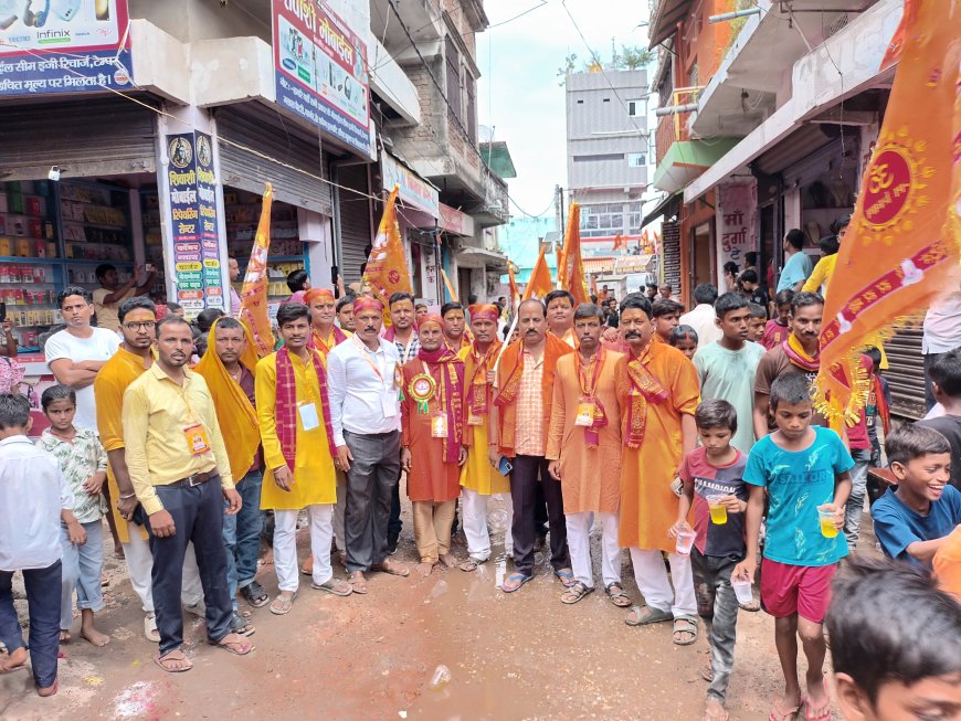 बुधवार को पंडित आचार्य विकास मिश्रा ने वैदिक मंत्रोच्चारण के बीच गणपति बाबा की पूजा-अर्चना कर शुभारंभ किया। इसके उपरांत हजारों श्रद्धालुओं ने माथे पर कलश धारण कर भव्य शोभायात्रा निकाली। शोभायात्रा में घोड़ा, सजीव झांकियां, वाहन सवारी और मधुर संगीत के साथ भक्त झूमते-गाते हुए “गणपति बप्पा मोरेया” के जयकारे लगाते रहे।