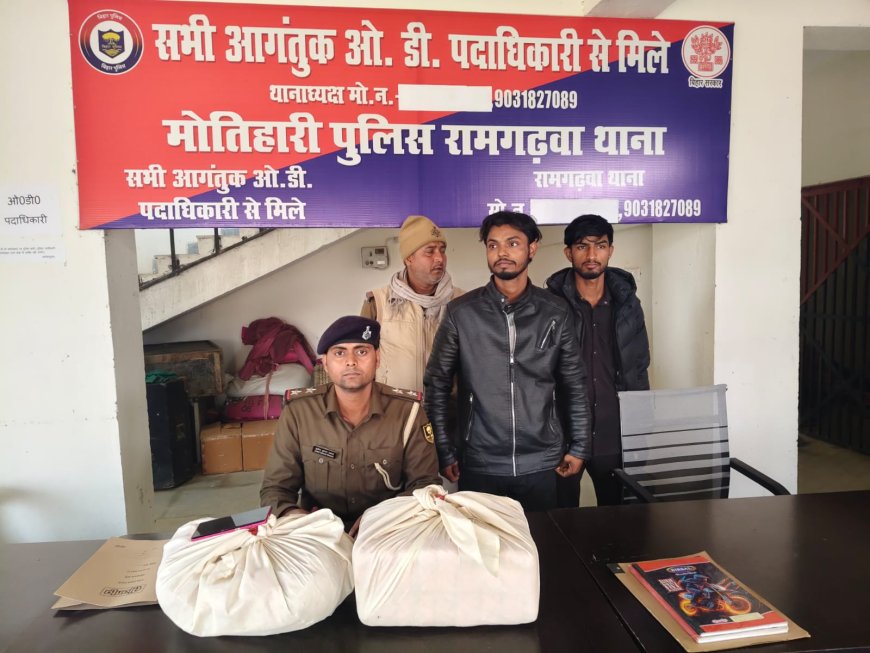 रामगढ़वा । रामगढ़वा : 8.9 किलो गांजा के साथ दो तस्कर गिरफ्तार, अपाची बाइक जब्त