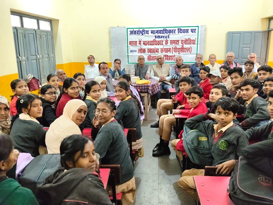 सीतामढ़ी :- अंतरराष्ट्रीय मानवाधिकार दिवस पर लोकस्वातंत्र्य संगठन (पीयूसीएल) के तत्वावधान में शहर के जानकी विधा निकेतन परिसर में "भारत में मानवाधिकार के समक्ष चुनौतियां" विषय पर एक विमर्शआयोजित की गई।अध्यक्षता संगठन के जिलाध्यक्ष रामप्रमोद मिश्र ने की।